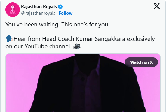 ଏବେ ରାଜସ୍ଥାନ ରୟାଲ୍ସର ମୁଖ୍ୟ ପ୍ରଶିକ୍ଷକ ଭାବରେ କୁମାର ସାଙ୍ଗାକାରାଙ୍କୁ ପୁଣି ଥରେ ଦାୟିତ୍ବ ହସ୍ତାନ୍ତର କରିଛି ଦଳ । ରାହୁଲ ଦ୍ରାବିଡ ବହୁ ବର୍ଷର ଚୁକ୍ତିରେ ରାଜସ୍ଥାନ ରୟାଲ୍ସ ସହିତ ଜଡିତ ଥିଲେ । ହେଲେ ଦ୍ରାବିଡଙ୍କ ପ୍ରଶିକ୍ଷଣରେ, ରାଜସ୍ଥାନ ରୟାଲ୍ସ ଖରାପ ପ୍ରଦର୍ଶନ କରିଥିଲା । 14ଟି ମ୍ୟାଚ୍ ମଧ୍ୟରୁ କେବଳ ୪ଟି ଜିତିଥିଲା ଏବଂ ପଏଣ୍ଟ ଟେବୁଲରେ ନବମ ସ୍ଥାନ ଅଧିକାର କରିଥିଲା ଦଳ । ଏହି କାରଣରୁ ଦ୍ରାବିଡ ନିଜ ପଦରୁ ଇସ୍ତଫା ଦେଇଥିଲେ । ଏବେ ସାଙ୍ଗାକାରାଙ୍କୁ ପୁଣି ଥରେ ଦାୟିତ୍ବ ଦେଇ ଦଳ ଆଗାମୀ ଆଇପିଏଲରେ ଭଲ ପ୍ରଦର୍ଶନ କରିବ ବୋଲି ଆଶା ରଖିଛି ।